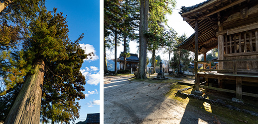 The smoke from preparing dinner was rising from the houses around there. Orange peeled persimmons (Tateishi persimmon) were tied with string, one by one, and hanged in a row at the front of the houses. They glittered beautifully.