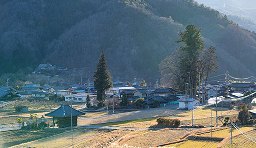 家々からは夕飯の支度の煙が立ちのぼり、軒先には皮がむかれ橙々色の立石柿がひとつひとつ紐で結ばれ、珊々と連なっています。